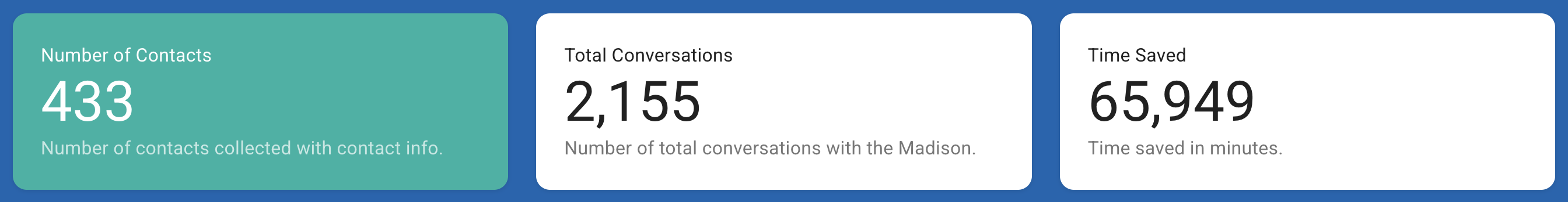 Madison's dashboard gives you three numbers front and center. They're simple, and they tell you everything you need to know.